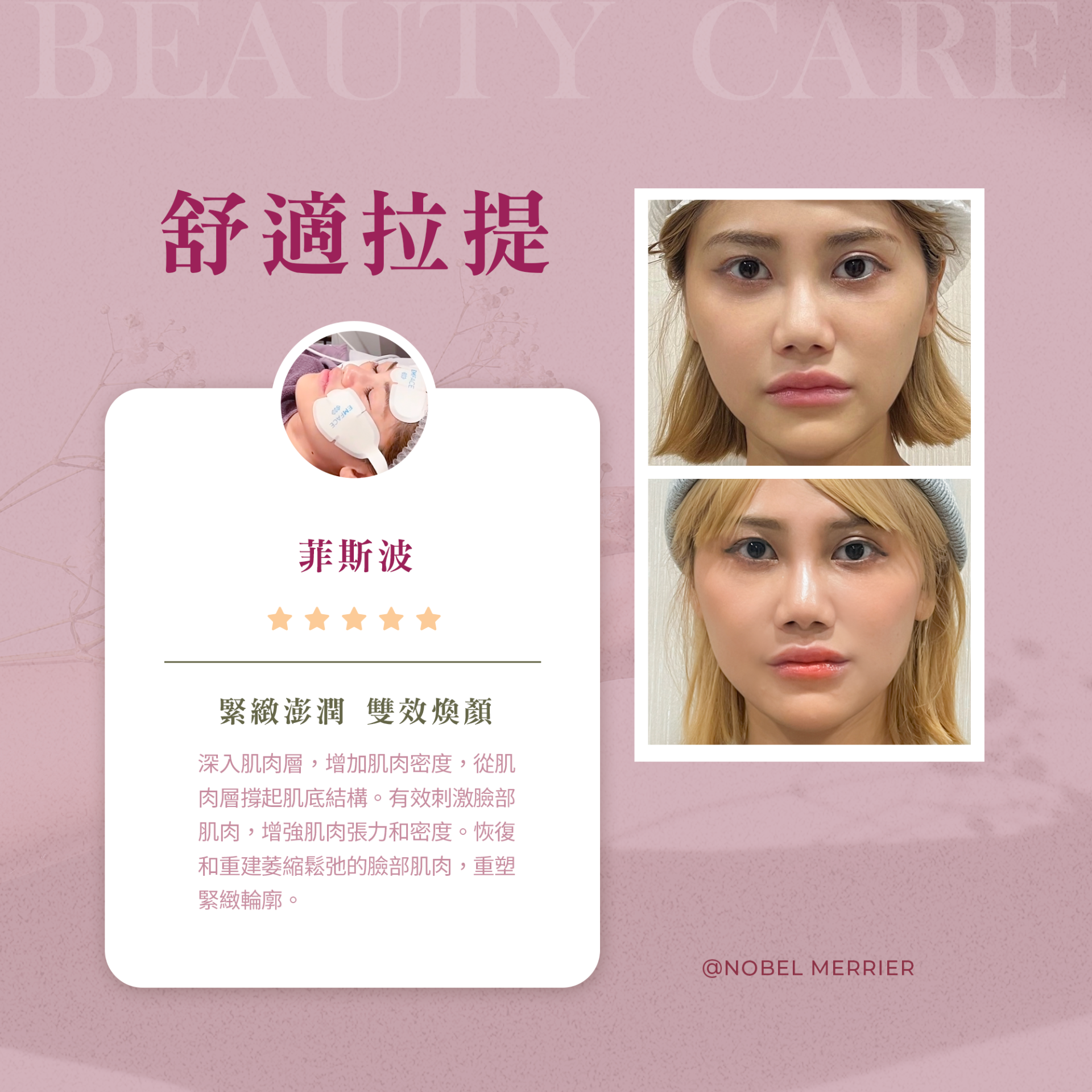 #美麗爾診所 #諾貝爾醫療集團 #豆芽 #甜心女神 #EMFACE #菲斯波 #成果分享 #緊緻拉提 #法令紋 #抬頭紋 #蘋果肌 #小V臉 #KOL實測