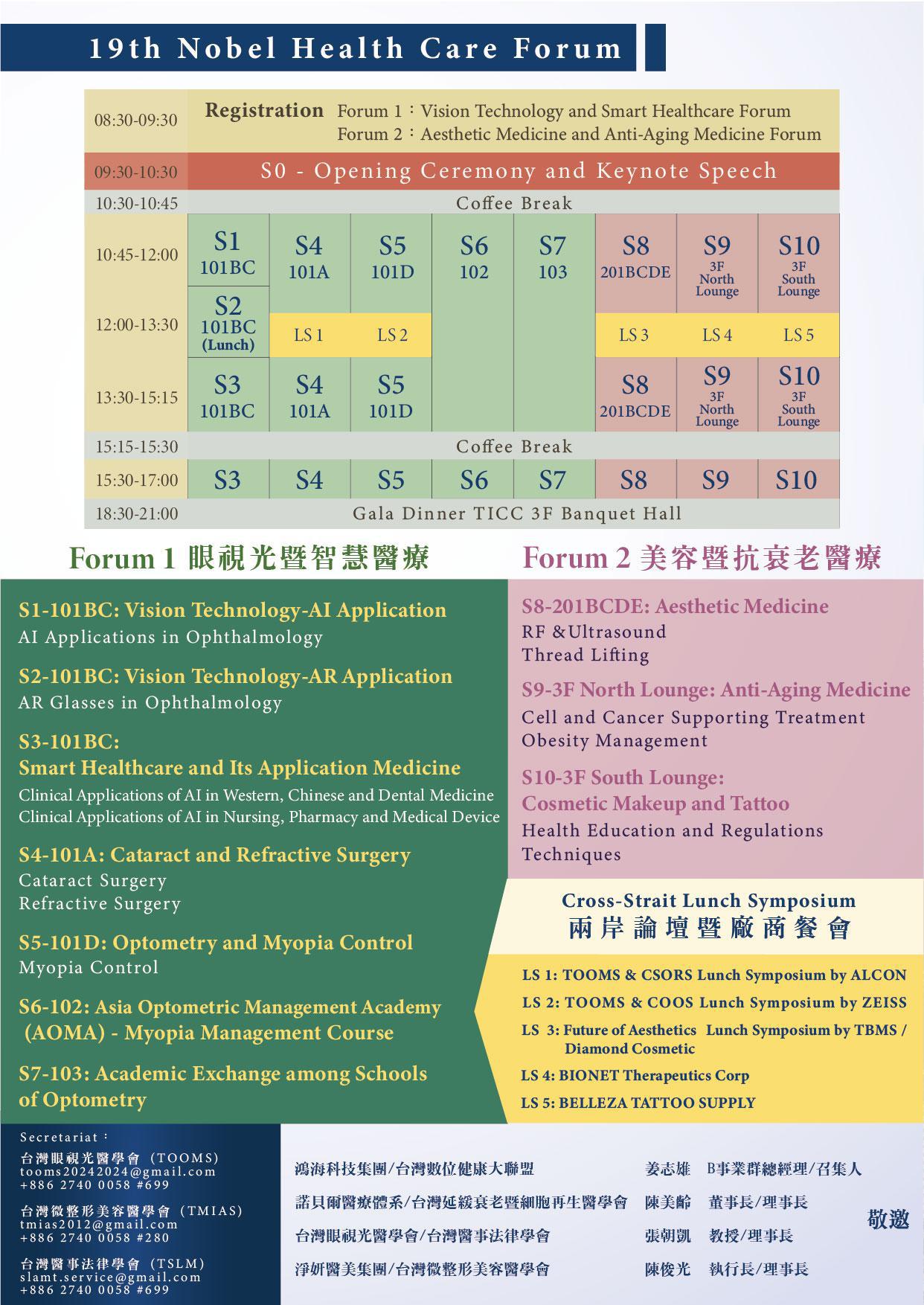 至於第三場論壇則聚焦智慧醫療在中醫、西醫、牙醫、藥學、護理及醫材的最新應用,主辦單位特別邀請到各相關醫事團體及公會共襄盛舉,來吸引除了眼視光和美容醫學之外的其他醫事人員踴躍參與。