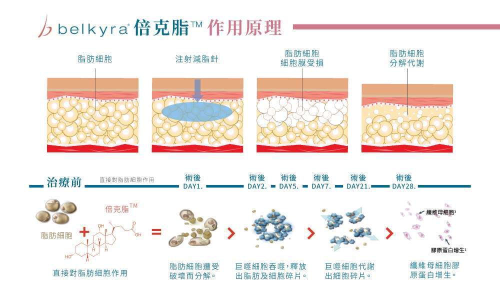 2.不用麻醉,在短短時間內完成幾點極微細針孔的注射,就能輕鬆消除不必要的脂肪細胞。