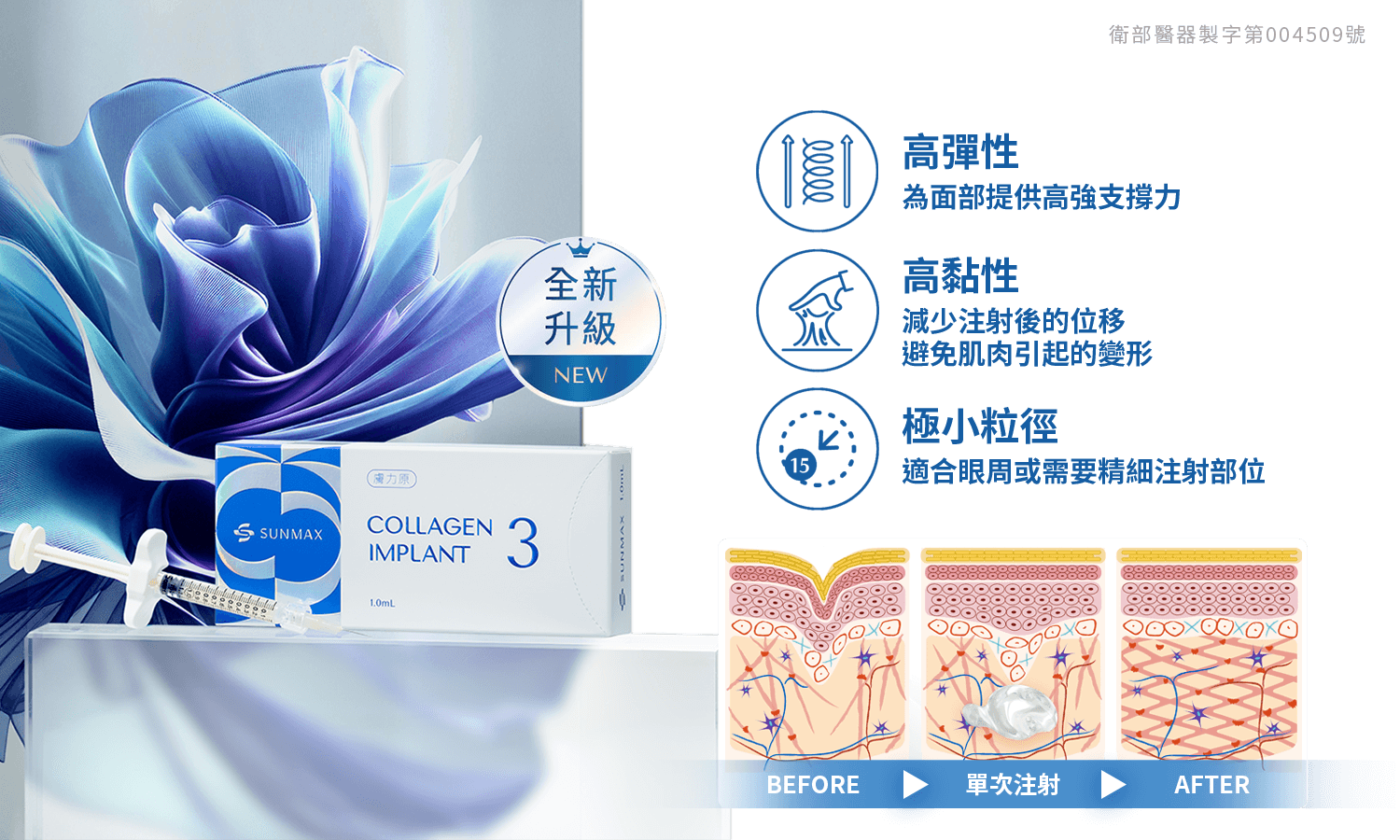- 自然穩定: 膠原蛋白具高度生物相容性,植入後能與組織融合,不輕易位移或產生異物感。